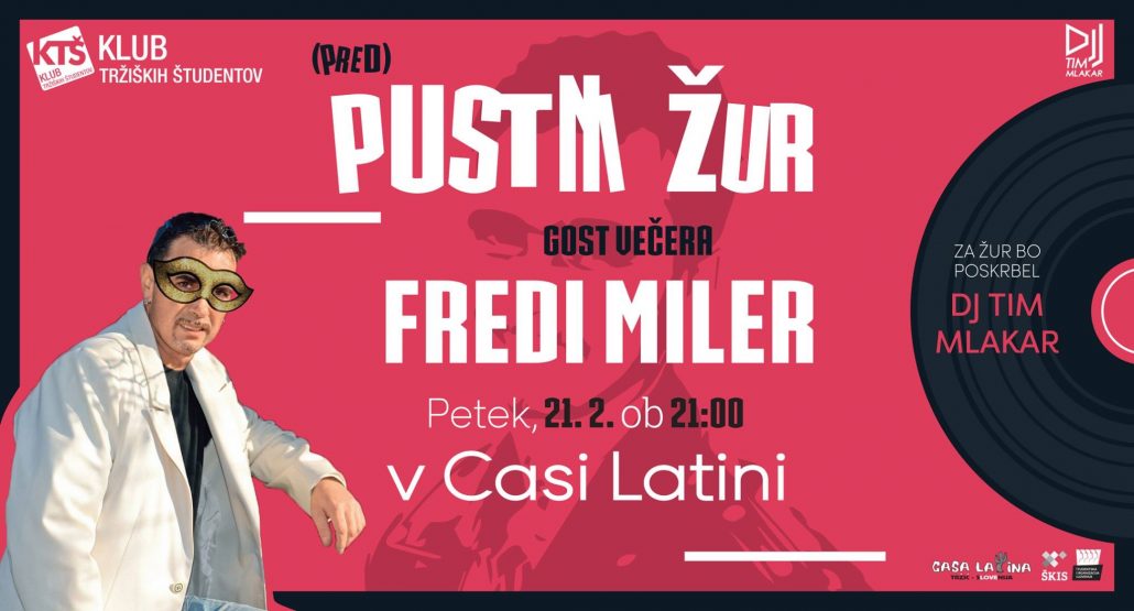 Za glasbo skozi celoten večer bo skrbel DJ Tim Mlakar, na odru pa se mu pridruži še eden in edini FREDI MILER.